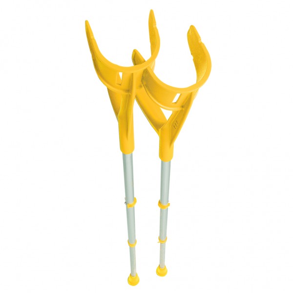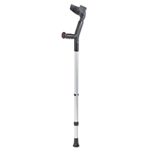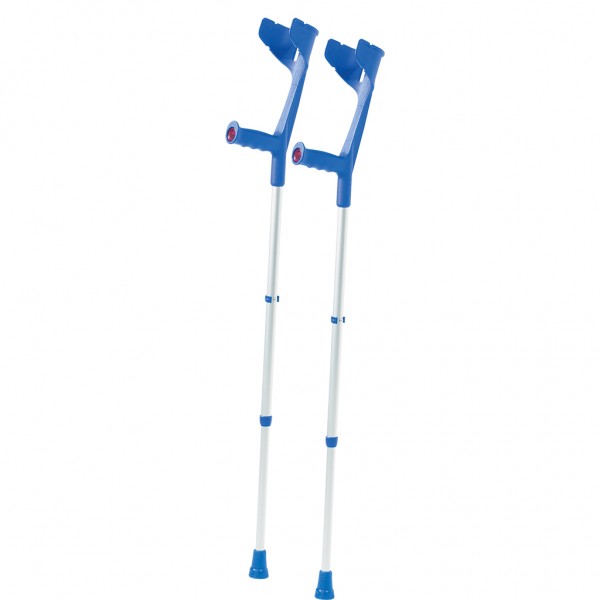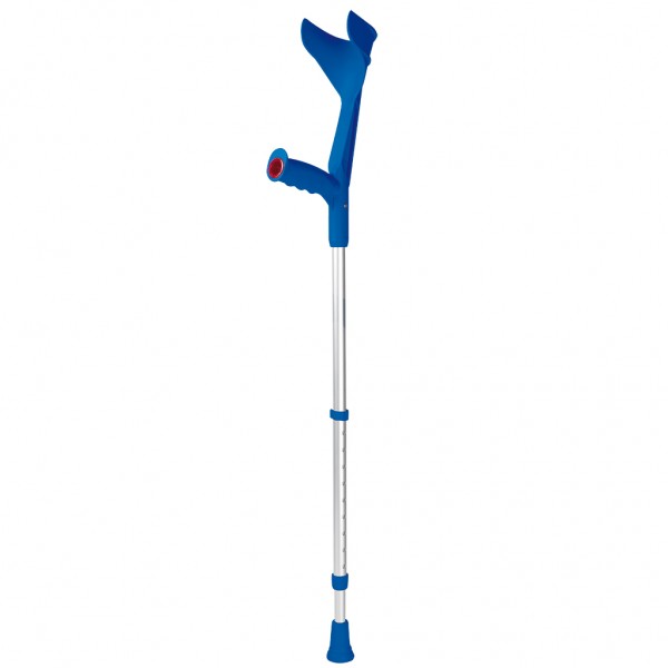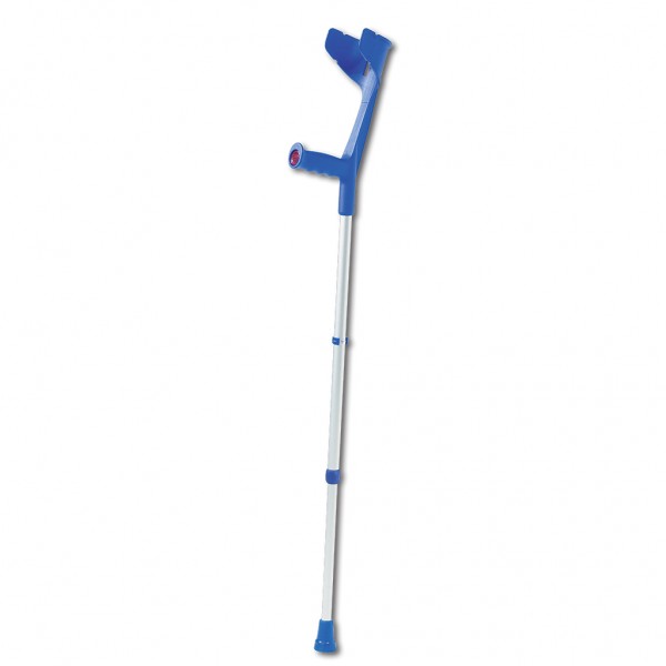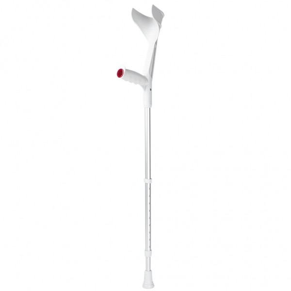 Костыли Экстраланг выполнены с учетом всех анатомических особенностей высоких людей. Оснащены удобным локтевым фиксатором, который надежно закрепляет локоть и не вызывает никакого дискомфорта. Ручка имеет эргономичную форму, поэтому кисть руки находится в правильном положении, не затекает и не болит. Материалы локтевого фиксатора и ручки — высококачественные гипоаллергенные полимеры.