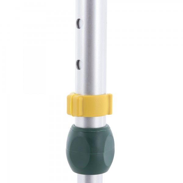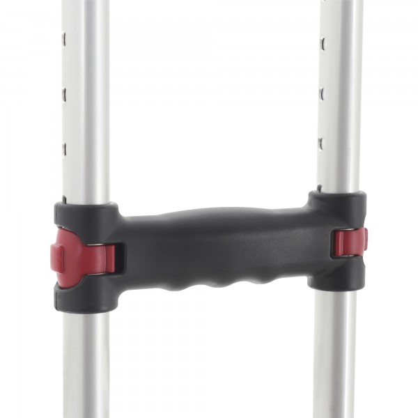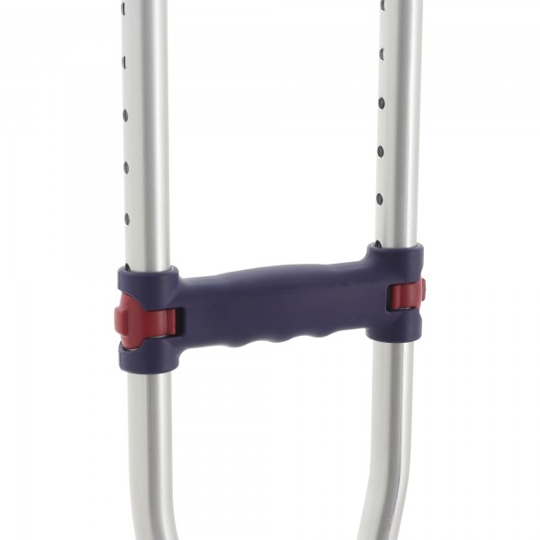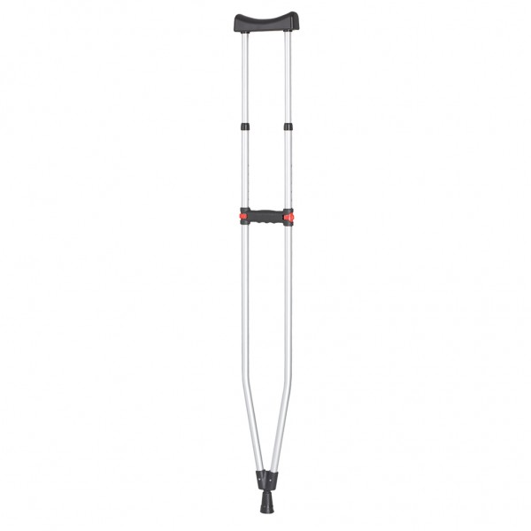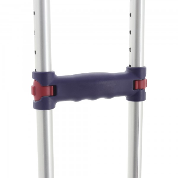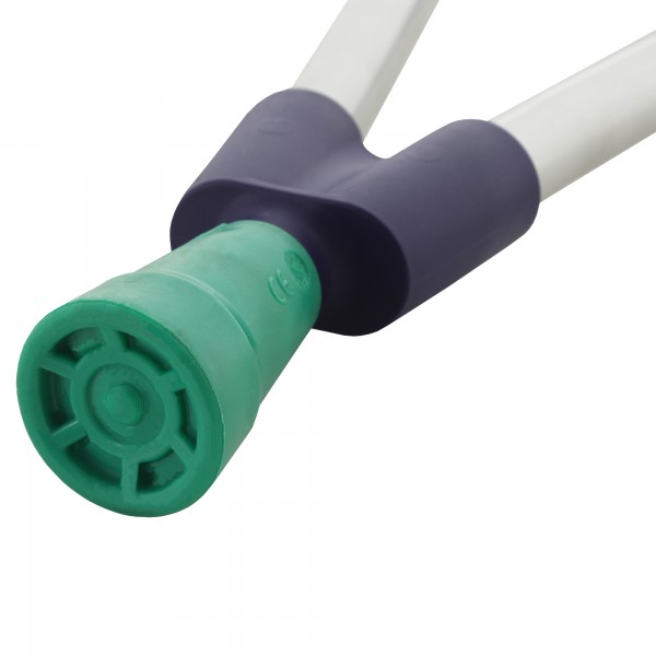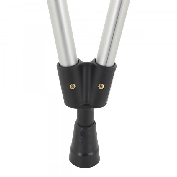 Костыль оснащен съемным наконечником с антискользящими свойствами, который при необходимости можно легко заменить. Имеется клип-фиксатор, благодаря которому костыли скрепляются друг с другом и удобно хранятся в период ненадобности. Конструкция регулируется по высоте на 10 позиций, что позволяет настроить необходимую высоту для каждого конкретного пользователя.